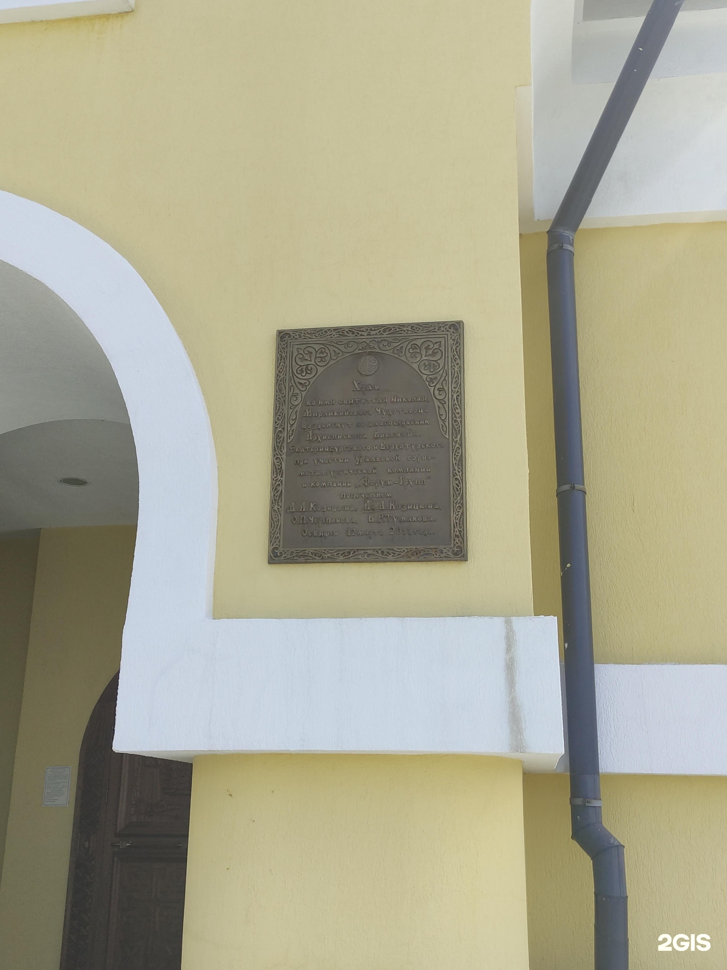 Надпись на памятной табличке: "Храм во имя святителя Николая Мирликийского Чудотворца воздвигнут по благословению Архиепископа Викентия Екатеринбургского и Верхотурского, при участии Уральской горно-металлургической компании и компании "Форум-Групп" попечением А.А. Козицына, Ал.А. Козицына, О.П. Черепанова, В.Р. Тумакова. Освящён 12 марта 2011 года".