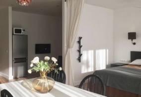 Останавливались здесь 14-19 апреля. Очень понравилось, администратор на первый взгляд показалась неприветливой, но на самом деле всегда нас встречала, открывала двери, не важно во сколько мы приезжали, с удовольствием делилась историями, подсказывала и направляла. В отеле очень чисто, в номере убирались каждый день, за 6 дней пребывания нам раз меняли постельное и полотенца, вода на этаже всегда была, в номере чай, чайник, посуда, холодильник, фен, телевизор. На территории проживают милые котики, которых берет хозяин отеля выхаживать и далее пристраивает в добрые руки. Также очень необычный интерьер, предметы старины в морской тематике, можно залипнуть на каждом уголке (мебель, книги, старинная техника, картины) - все дело рук хозяина, видно что обставлено с душой. Прекрасный вид из окна и пение птиц восхищает - можно просто наслаждаться, а можно наснимать атмосферных видосиков для социальных сетей. Мы брали только проживание, тк кушали в разных городах и локациях. Отель однозначно рекомендую - здесь тихо, атмосферно, чисто и тепло - для отдыха самое то. А еще в 10 минутах ходьбы Балтийское море, где на берегу можно найти много много камушков янтаря))