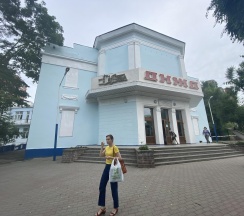 По очертаниям в плане здание напоминает самолёт, в чём, возможно, отражена символика архитектурных поисков того времени. Между двумя 2-3-этажными крыльями располагается объём зрительного зала со сценической коробкой, соединённый с ними криволинейными вставками. Сложная композиция, необычные ракурсы сдвинутых и повёрнутых друг к другу объёмов, двухцветная окраска фасадов придают зданию своеобразную монументальность.Дворец до настоящего времени является одним из крупнейших культурно-просветительских учреждений в крае. Его большой зрительный зал вмещает 450, а малый 250 человек. Имеются многожанровые кружки и студии самодеятельного творчества. В годы Великой Отечественной войны в здании клуба размещались военный госпиталь и призывной пункт. В 1948 г. и 1953 г. здание реконструировалось по проекту архитектора И.И. Петренко.
