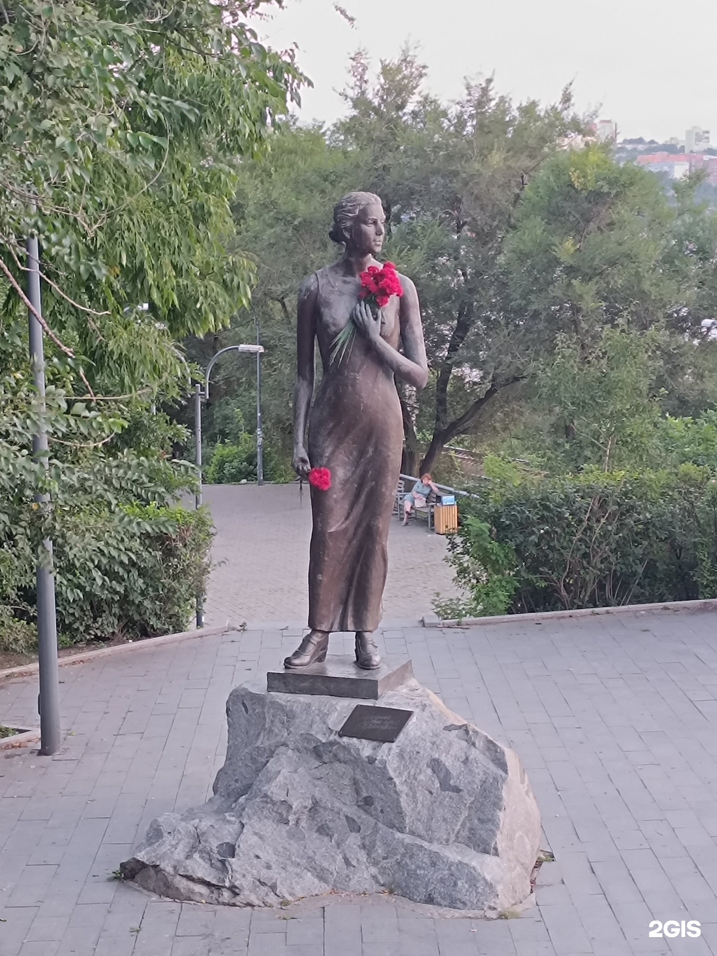 Скульптурный образ Катюши был выбран в ходе городского конкурса весной 2013 года. Девушка из песни давно стала символом любви и верности. По мнению ряда историков, в числе которых известный краевед Нелли Мизь, прототипом героини знаменитой и любимой в стране и в мире песни могла быть Екатерина Алексеева, урожденная Филиппова, родившаяся во Владивостоке. Девушка училась в консерватории, а потом, выйдя замуж за капитана-пограничника Александра Алексеева, вновь вернулась в Приморье. Здесь Екатерина и ее муж принимали участие в героических боях на озере Хасан в 1938 году.