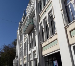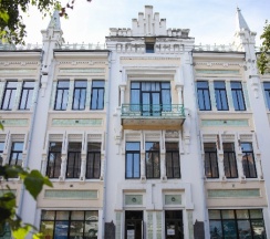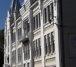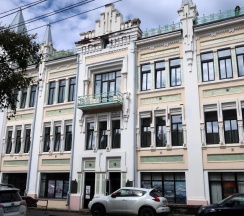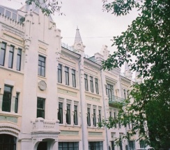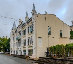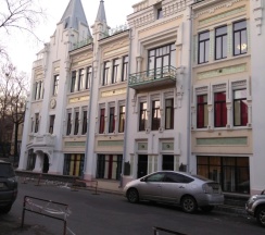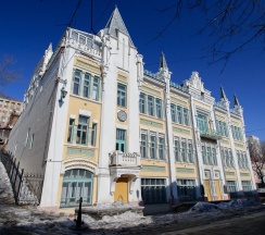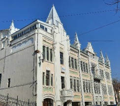 Прямоугольное в плане, трехэтажное, со стенами из кирпича и облицовкой отдельных деталей фасада глазурованной плиткой. В пластической разработке фасадов использованы мотивы и архитектурные детали поздней готики и модерна. Стены расчленены по вертикалям пилястрами, прорезающими карниз и заканчивающимися декоративными пинаклями с шатровыми крышами. Узкие окна-бойницы второго и третьего этажей разделены полуколоннами и объединены общим сандриком. Вход в здание смещен асимметрично к его западному торцу и акцентирован готическим ступенчатым полуфронтоном с четырехгранной шатровой крышей над ним.