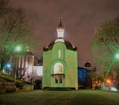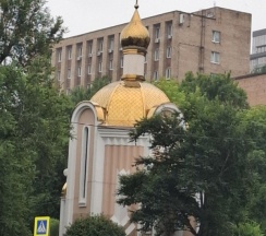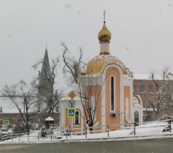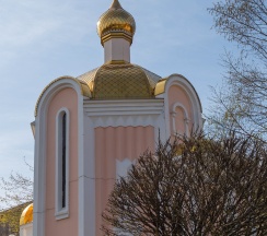 Небольшой Уютный храм, Интересное решение. Часовня отдельно, Колокольня отдельно.