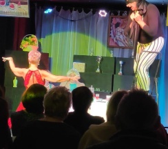 Костюмера просто рекомендую уволить, если он у вас вообще есть. Нарядить фем-фаталь в трубу из красной подкладки с завязанными узлом лямочками - неужели у вас не нашлось ни одного красного (да и любого другого) женского платья в театре?! В гардеробе актрисы? У ее подруг? В ближайшем магазине? Халтура и неуважение к зрителю. Нет денег на портного - не позорьтесь. Но не показывайте публике подобный дивавай.