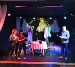 Из плюсов: атмосфера театра. Видно, что место для своих, очень камерное. Собирающаяся публика вся между собой знакома, получается эдакий квартирник для пожилых театралов. Режиссер перед спектаклем общается со зрителем, приятно и сближает