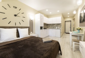 Апартаменты в Железнодорожном районе, в 2 км от центра города. Театр драмы имени В. М. Шукшина находится в 2 км от апартаментов, музей «Горная аптека» и Алтайский государственный краеведческий музей — в 4 км, Нагорный парк — в 7 км, зоопарк «Страусиное ранчо» — в 16 км. Расстояние до аэропорта Барнаул составляет 16 км, а до ж/д вокзала — 300 м. Для бронирования доступны апартаменты двух категорий: Улучшенные и Студия. Апартаменты оснащены эргономичной мебелью, полностью оборудованной кухней, телевизором с кабельными каналами, доступом к WI-FI, стиральной машиной, собственным санузлом с душевой или ванной, гигиеническими принадлежностями. Гладильная доска, утюг и фен предоставляются по запросу. Также в апартаментах предусмотрен балкон. Гости могут оставить свой автомобиль на парковке возле дома. Возможно бесконтактное заселение. ...