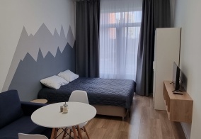 Второй раз за лето остановились в этой гостинице. Остались очень довольны! Испробовали два варианта - номер-студия и квартира на Азина20/3. Студия - небольшой, но очень комфортный номер, есть всё - халаты, тапочки, в ванной - всё необходимое вплоть до крема для тела! Чай, кофе, вода... Завтрак включен, есть возможность выбрать вариант и время подачи в номер. Отлично подходит для путешествия налегке! Квартира - более бюджетный вариант, но очень достойный за свои деньги! В наличии - посуда вся необходимая, и даже есть турка для кофе, что необычайно порадовало (обычно при аренде квартир варим в кастрюльке))) Единственное, если можно, маленький пизыречек бы масла растительного пожелать)) большую бутылку в путешествие не купишь, с собой не повезешь. Белое постельное бельё, одеяло нормальной ширины на двуспальной кровати (просто имеем разный опыт, связанный с арендой именно квартир, а не номера прямо в отеле, вот и отмечаем плюсы) Тишина, спокойствие, домофон работает - с доставкой еды проблем не возникло, не надо было бежать вниз к курьеру. В шаговой доступности большое количество продуктовых магазинов и кафе разного уровня. Близость к ЖД вокзалу и метро - огромный плюс! Огромное спасибо всему персоналу - все барышни на рецепции всегда предупредительны, благожелательны и милы!