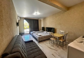 Отличный отель по очень приятной цене. Отдыхали с дочкой с 20.05.-30.05. Остались очень довольны. В номерах очень чисто, моют каждый день. Кухня очень удобная и большая, есть вся необходимая кухонная утварь, это очень порадовало, есть с чем сравнить! Замечательный администраторы Инна и Лиана, девчонки всегда приходили на помощь! В целом весь персонал отеля очень вежливы и доброжелательны! Спасибо за Ваш труд))) в такой отель всегда хочется возвращаться. Удобное расположение, до рынка идти минут 5-7, море тоде не подалеку. Так же порадовало что можно в любую точку Гагры уехать без проблем, так как не далеко находится остановка. В округе есть очень много кафе, где можно вкусно перекусить. Так же порадовало что в отеле можно заказать экскурсию, за нами приезжали прям к воротам и бежать никуда не нужно было. Ездили в "Новый афон с пещерой" и на "Озеро Рица" нагулялись от души. P.s: ОДЕВАЙТЕ ОБУВЬ ПОУДОБНЕЕ 😅 Бассейн вообще отдельный просто отзыв из миллиона звёзд!!!!! Как же он меня спасал когда мне было уже тяжко ехать на прогулки, дочку он всю занимал. Водичка в бассейне тёплая и чистая как слеза. И порадовало что он не захлорирован, так как у меня на запах хлорки аллергия, тут я себя чувствовала комфортно. Мы вернёмся к Вам снова, но на этот раз надеюсь получится всей семьёй)))