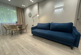 У нас квартира снята до понедельника, на 6 ночей, на данный момент все классно. Квартира очень модерновая, не убитая, хороший ремонт, мебель, потолки, плюс чисто, все есть, я доволен. В наличии стиральная машина, холодильник, гладильная доска, сушилка. Было приятно, квартира обалденная, чистенькая, новенькая, претензий нет.