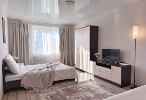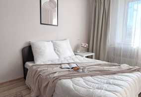 Однокомнатная квартира с балконом на 5м этаже 5-ти этажного дома. В апартаментах возможно размещение до 4 гостей. В отдельной кухне: чайник, СВЧ печь, холодильник, варочная панель ,посуда на 5 персон, моющие средства. В комнате: удобная кровать 180х200 с ортопедическим матрацем, всегда свежее постельное белье, диван (спальное место 160х200), большой телевизор, высокоскоростной WI-FI. К услугам гостей: утюг, гладильная доска, бельевая сушилка, фен, плечики для одежды, вместительный шкаф-купе, водонагреватель. По запросу предоставляются: ортопедическая раскладушка, белоснежные парные халаты, кровать-манеж для ребенка весом до 15 кг, стульчик для кормления, горшок. Размещение с животными возможно, по договоренности, с дополнительной оплатой и залог...