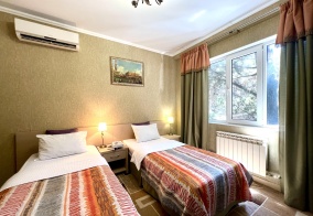 Мы отдыхали вдвоем с сыном в начале августа. Чистый, светлый, уютный небольшой номер с большими окнами и красивым видом из окна на пальмы и виноград. Особенно в жару порадовал тихий кондиционер. Нам очень понравилось, еще раз приедем)