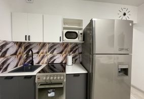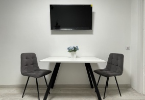Есть все для комфортного проживания: двуспальная кровать, раскладной диван, интерактивное телевидение, Smart TV, Wi-Fi, постельное бельё – 100% хлопок, полотенца, посуда, фен, утюг, гладильная доска, сушилка, микроволновая печь, плита, духовой шкаф, стиральная машина, холодильник, одноразовые гигиенические наборы.